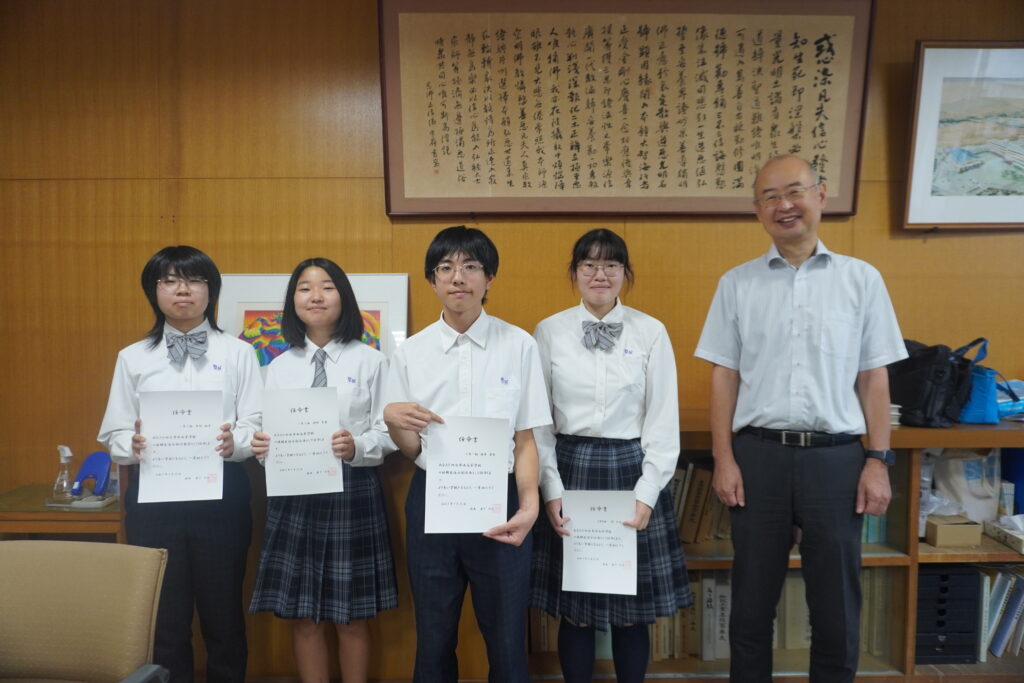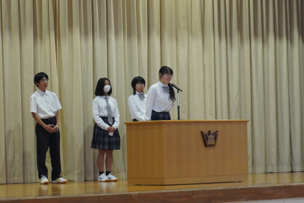 後期生徒会役員の任命式 9.25 2025.9.25 その他 9月24日に前期生徒会役員選挙が行われました。 全校生徒の前で話すのは緊張すると思いますが、それぞれに自分の思いを伝えてくれました。 そして本日、選ばれた役員の任命式が行われました。 後期生徒会は10月から6月中旬までの任期で、藜の作成・クラスマッチの企画・来年の体育祭企画が主な活動となります。学校の代表として頑張ってください!