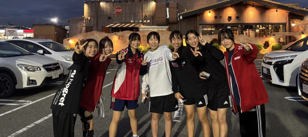 10/11~10/12 和歌山遠征 2025.10.15 女子ハンド部 10月11日~12日にかけて和歌山遠征に行ってきました。 テスト明けでの練習試合となりましたが、選手たちは集中して取り組み、手応えのある内容となりました。 遠征を通して仲間との絆も深まり、チームとして成長できたと感じます。 11月から始まる新人戦に向けて、さらに成長できるように頑張ります!