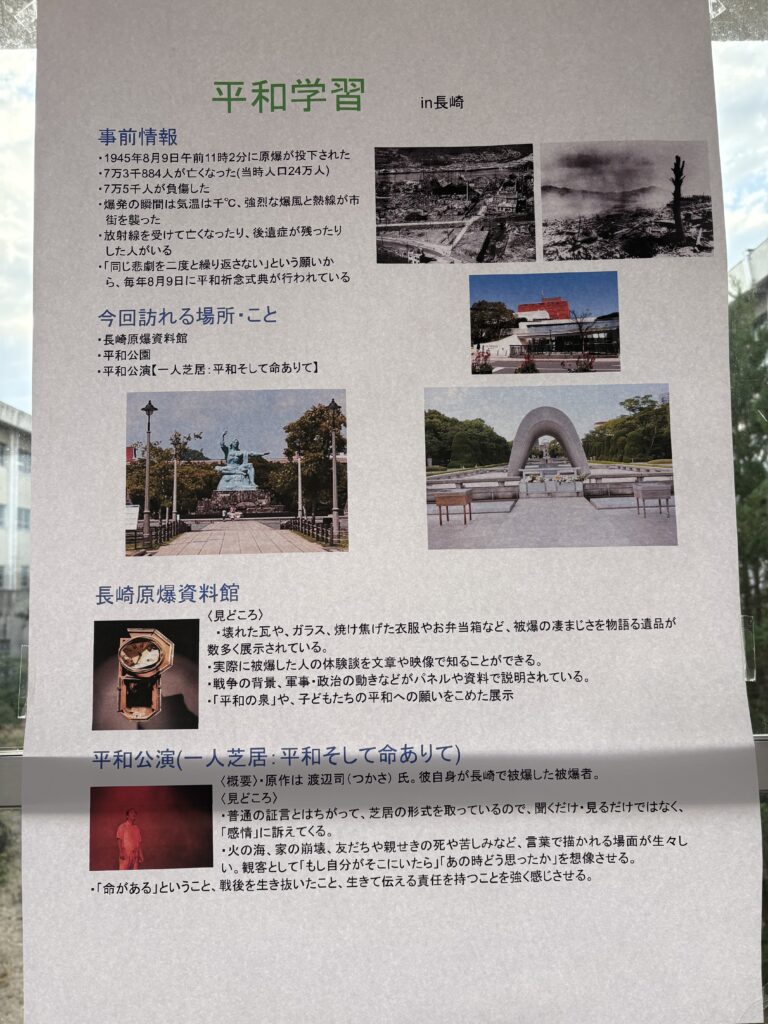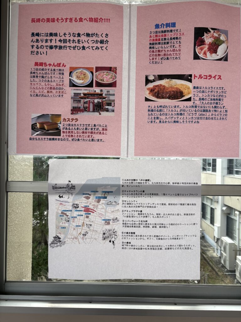 修学旅行委員の生徒達が事前に調べ学習をして見所等を紹介してくれています。