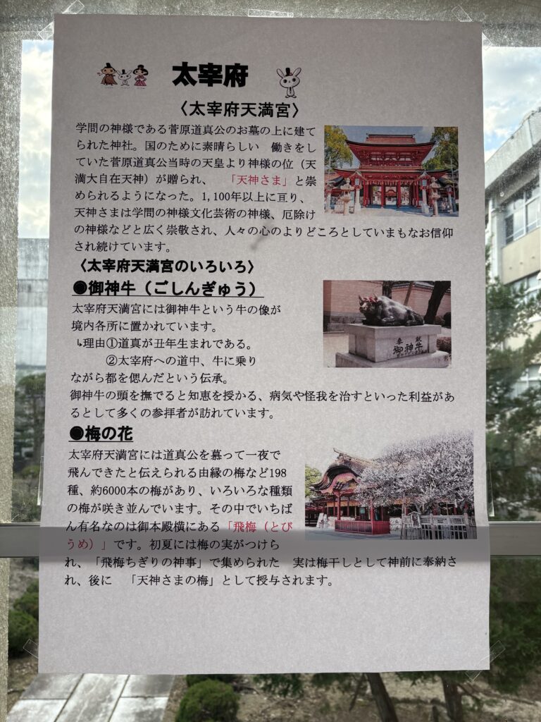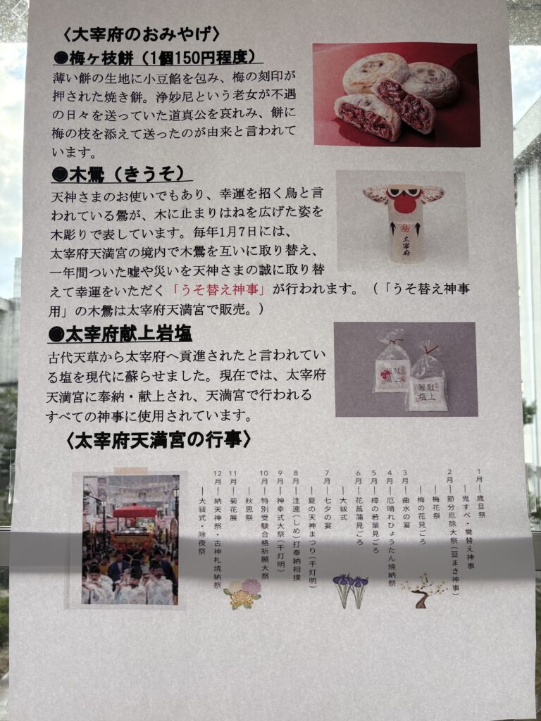 太宰府天満宮は学問の神様、芸術文化の神様、厄除けの神様と言われる天神様を祀っているとのことですので、修学旅行の定番になっています。梅ヶ枝餅に梅は入っていませんよ。
