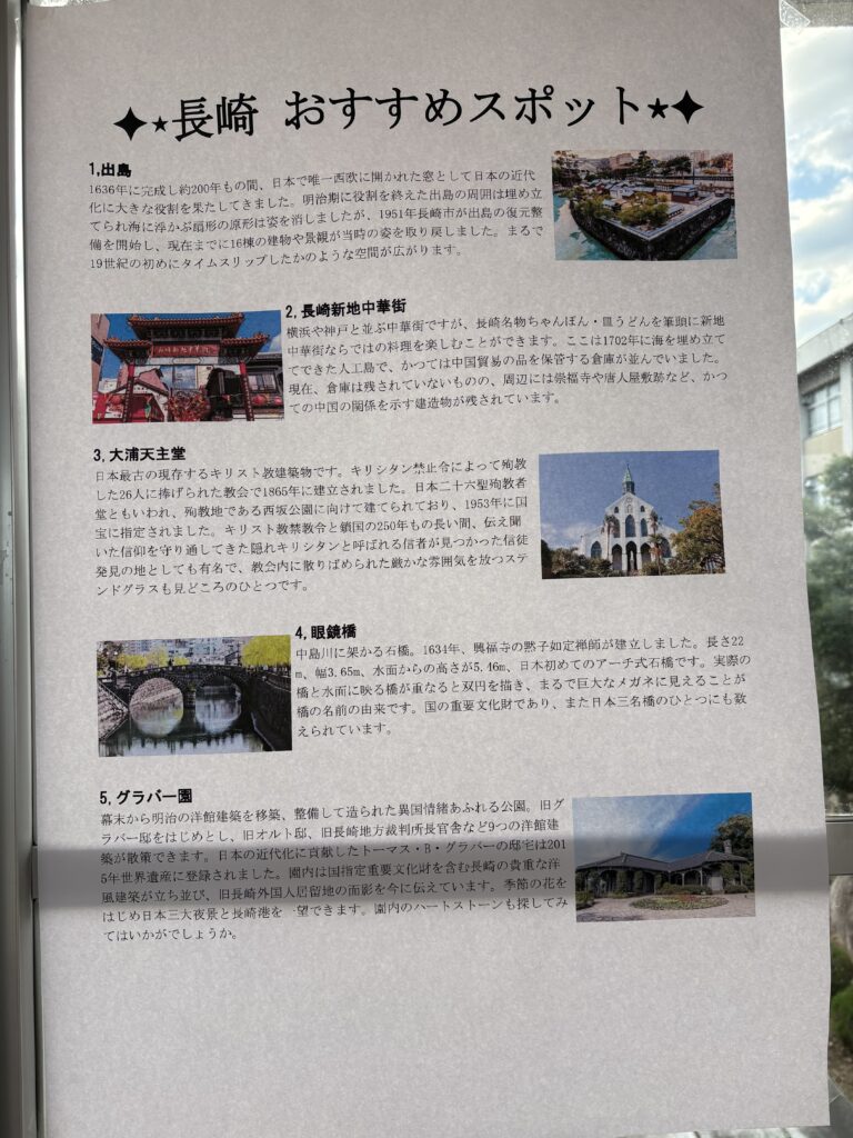 長崎では自由行動の時間がたっぷりありますので、いくつか見て回れるといいですね。