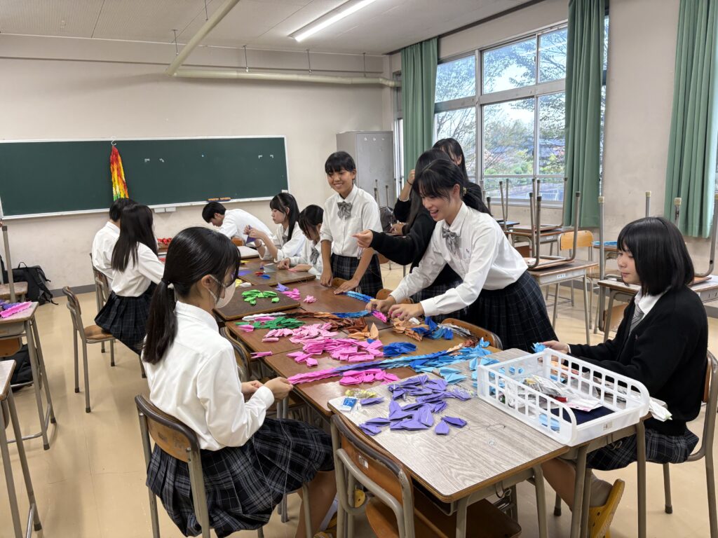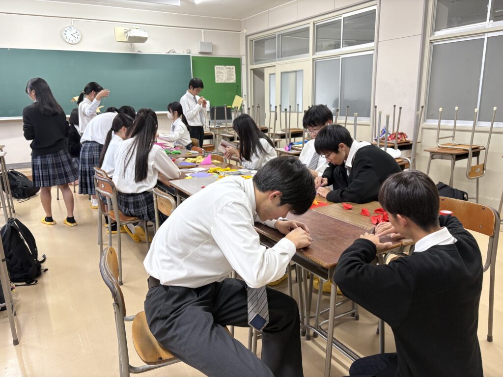 修学旅行委員をはじめ、有志のみんなで千羽鶴も作成中です。