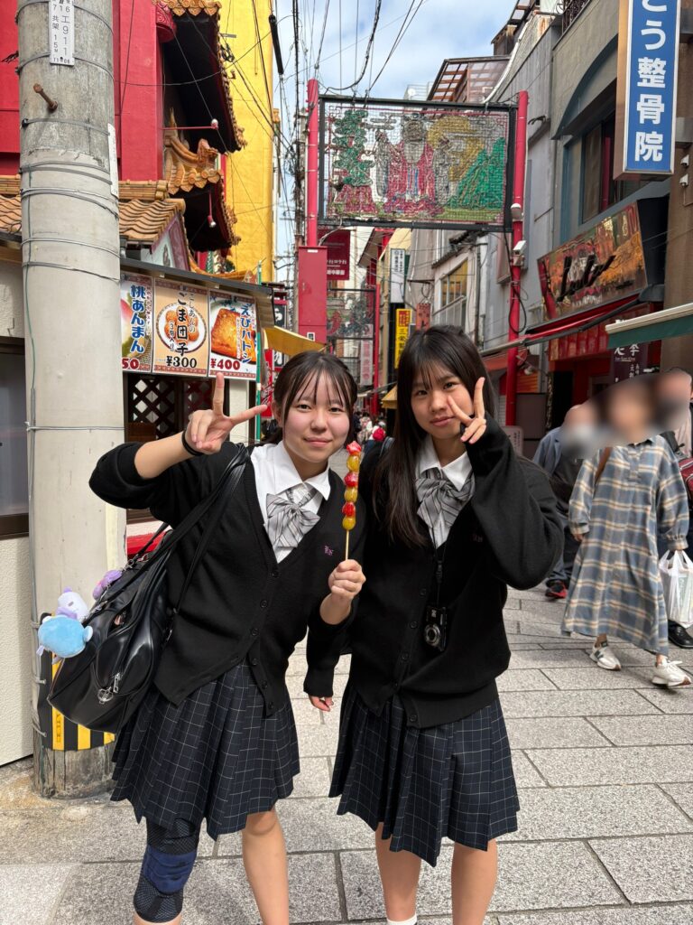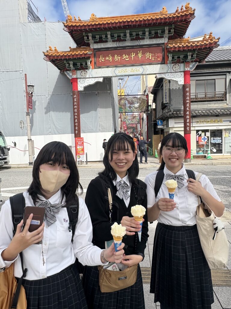 中華街や出島など、定番の観光地で待ち伏せているとたくさんの生徒に出会うことができました。