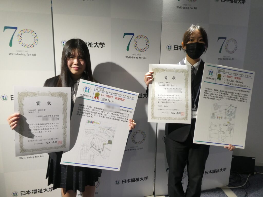 日本福祉大学主催、ウェルビーイング工学アイデアコンテストで最優秀賞・優秀賞を受賞した2年生が表彰式に参加しました。