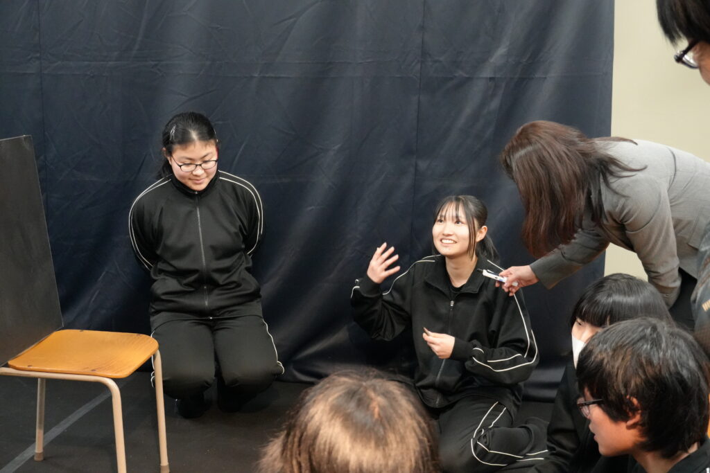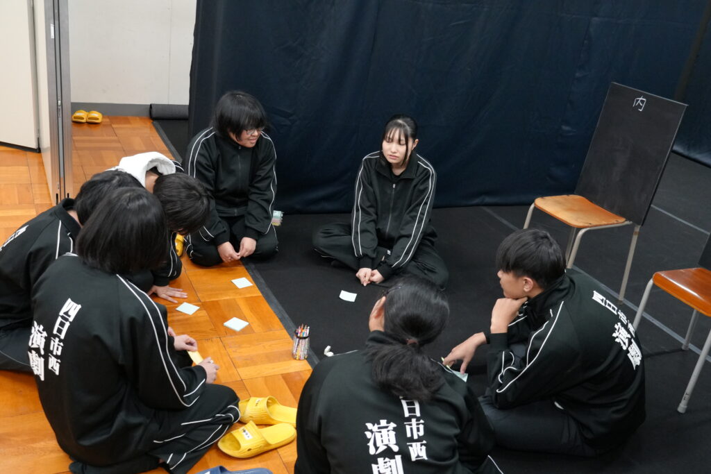 漠然としたテーマから、自分たちで設定を話し合って意見を出し合い、それを台本にしていきます。