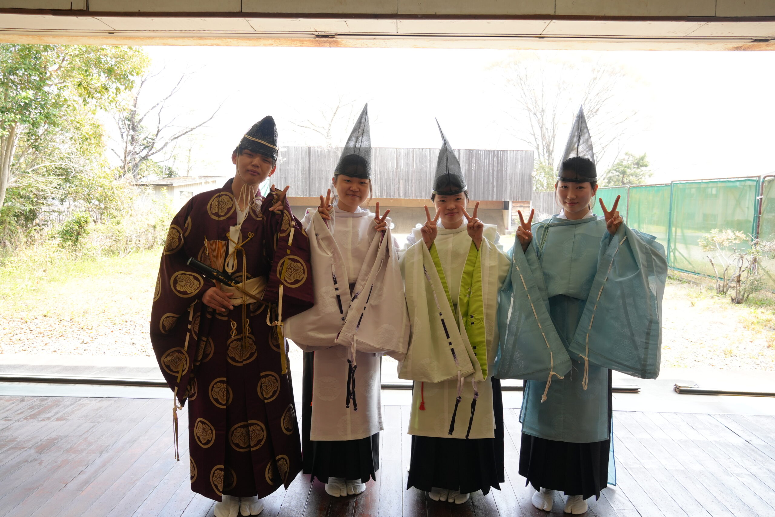 水干は色鮮やかで美しく、直垂は凜々しく感じられて、生徒達は恥ずかしがりながらも、楽しんでいました。