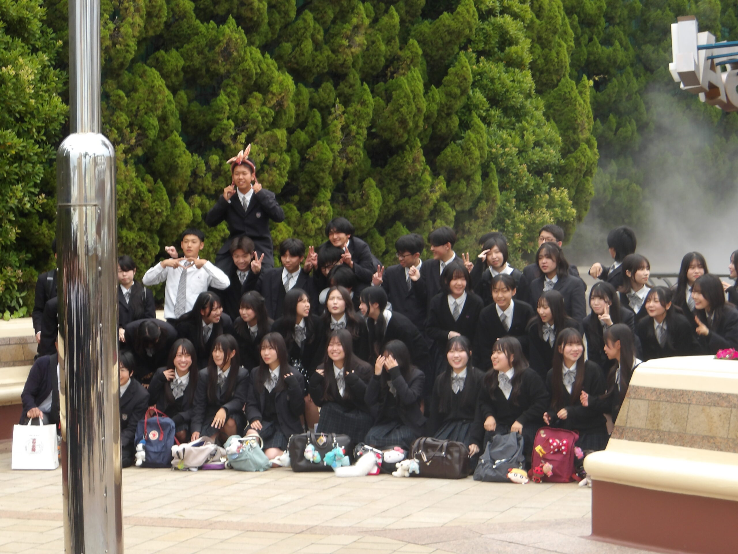 3学年春の遠足 USJにいってきました! 2026.4.28 行事 3学年は春の遠足でUSJに行ってきました! 気分はホグワーツ!(まだ滋賀のパーキングエリアです) 入場ゲートに向けて、歩みを進めていきます。いい笑顔。 USJに到着後、クラス別で集合写真を撮り、そこから各自で自由行動をしました。 卒業まで残り1年を切ってしまいました。高校生活最後の1年、悔いのない生活を送ってください!